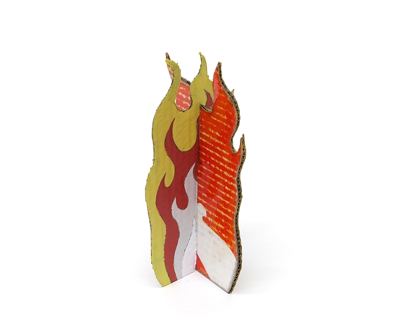 ink, acrylic and epoxy resin on found cardboard